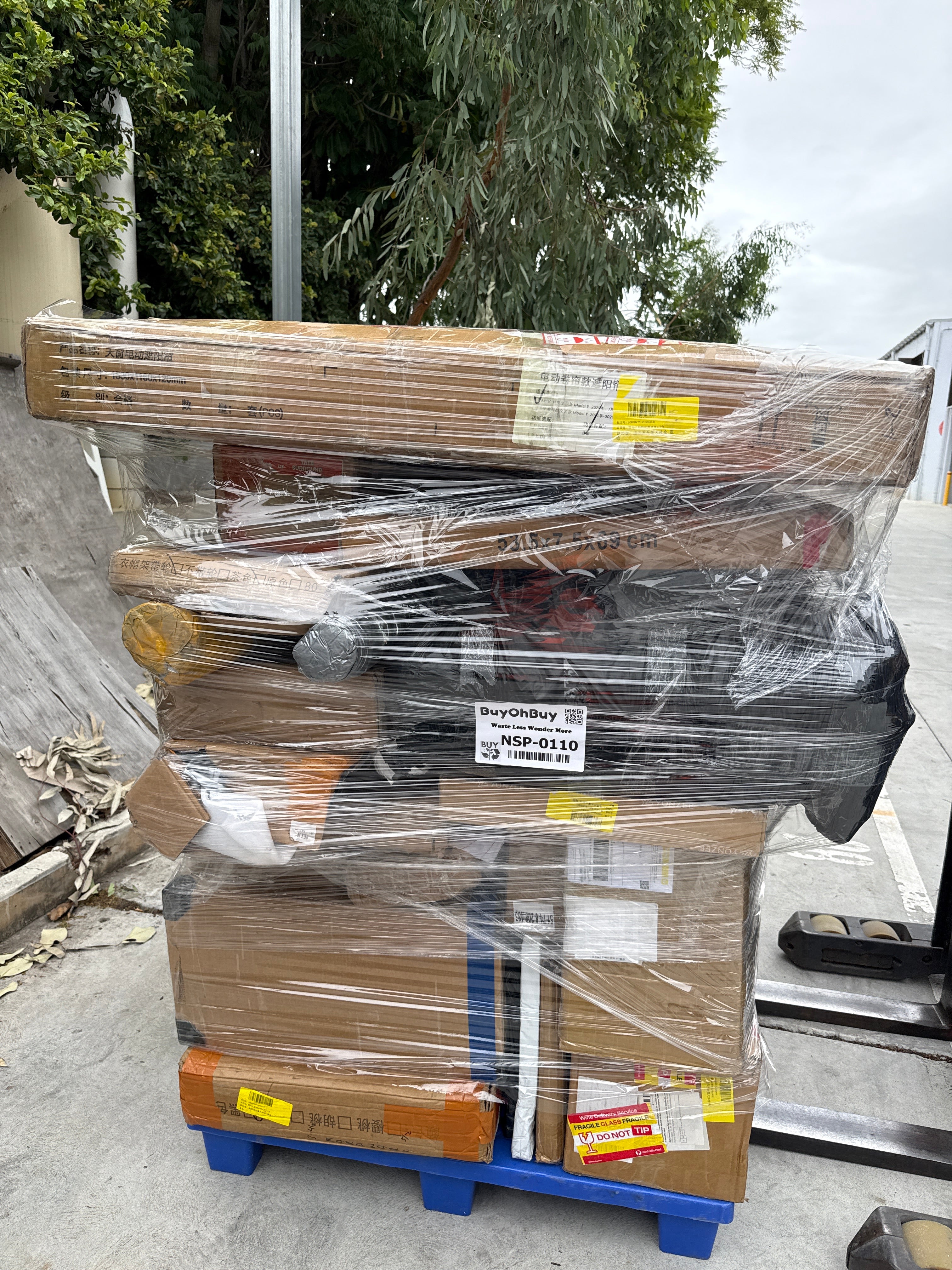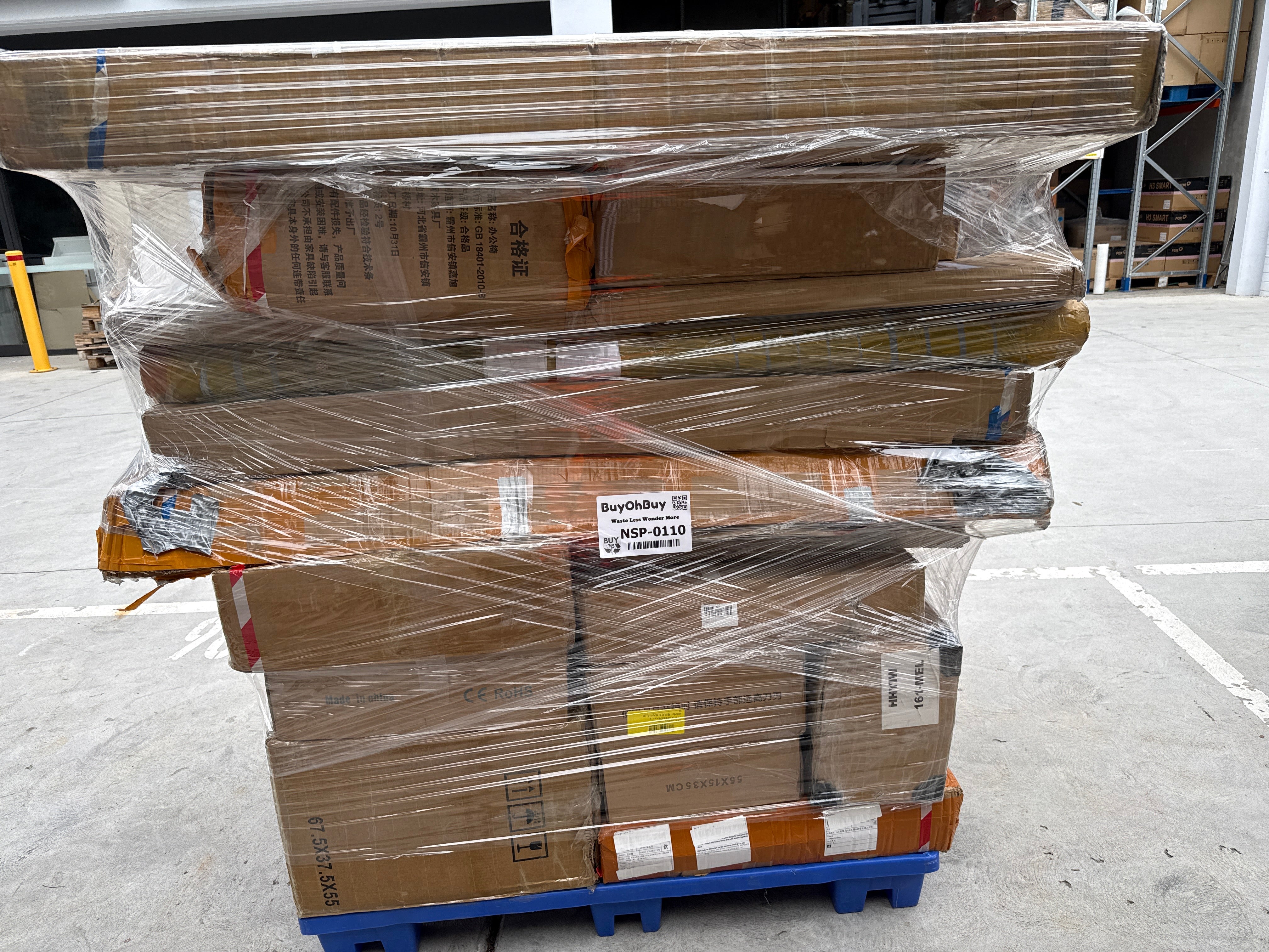 Each pallet is a random mix of goods that could include: